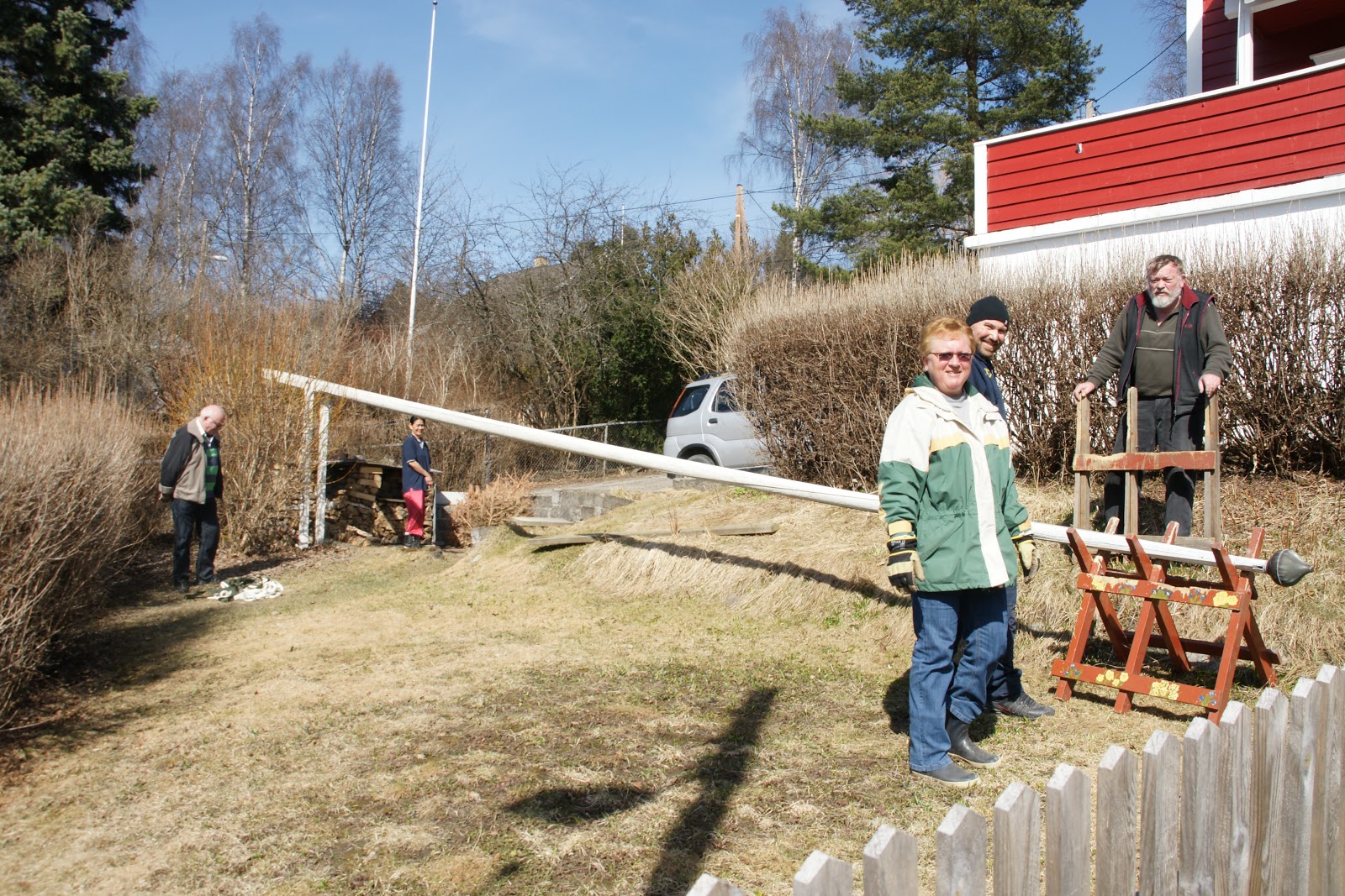 Flaggstangen til nabo'n må males før før 17.mai, så det var bare for store og små - og brette opp ermene...samarbeid er tingen... :-)