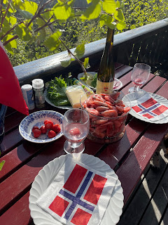 ...vi koste oss i solveggen med jordbær og råssa bobler, bunad og findress var byttet ut med turtøy...